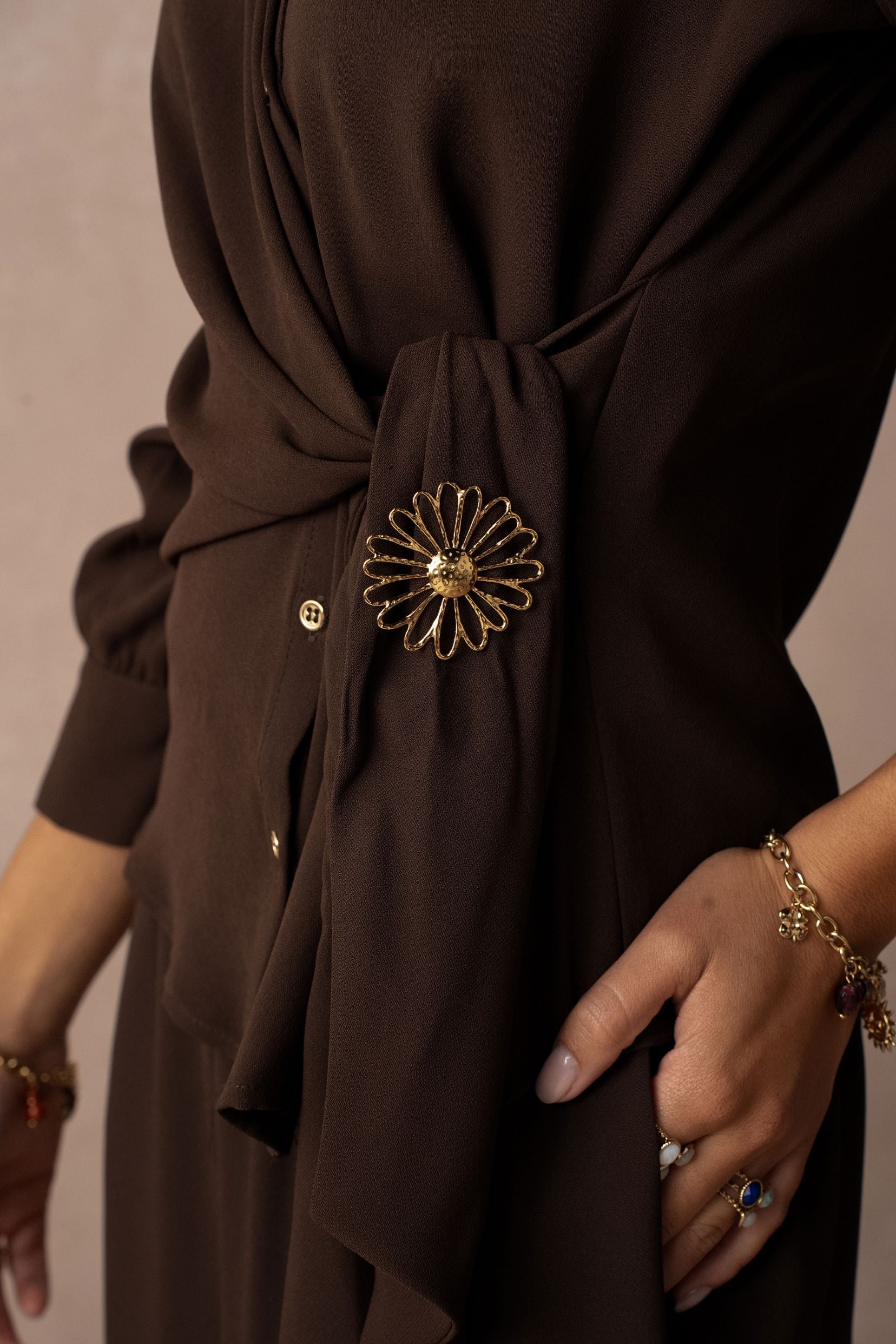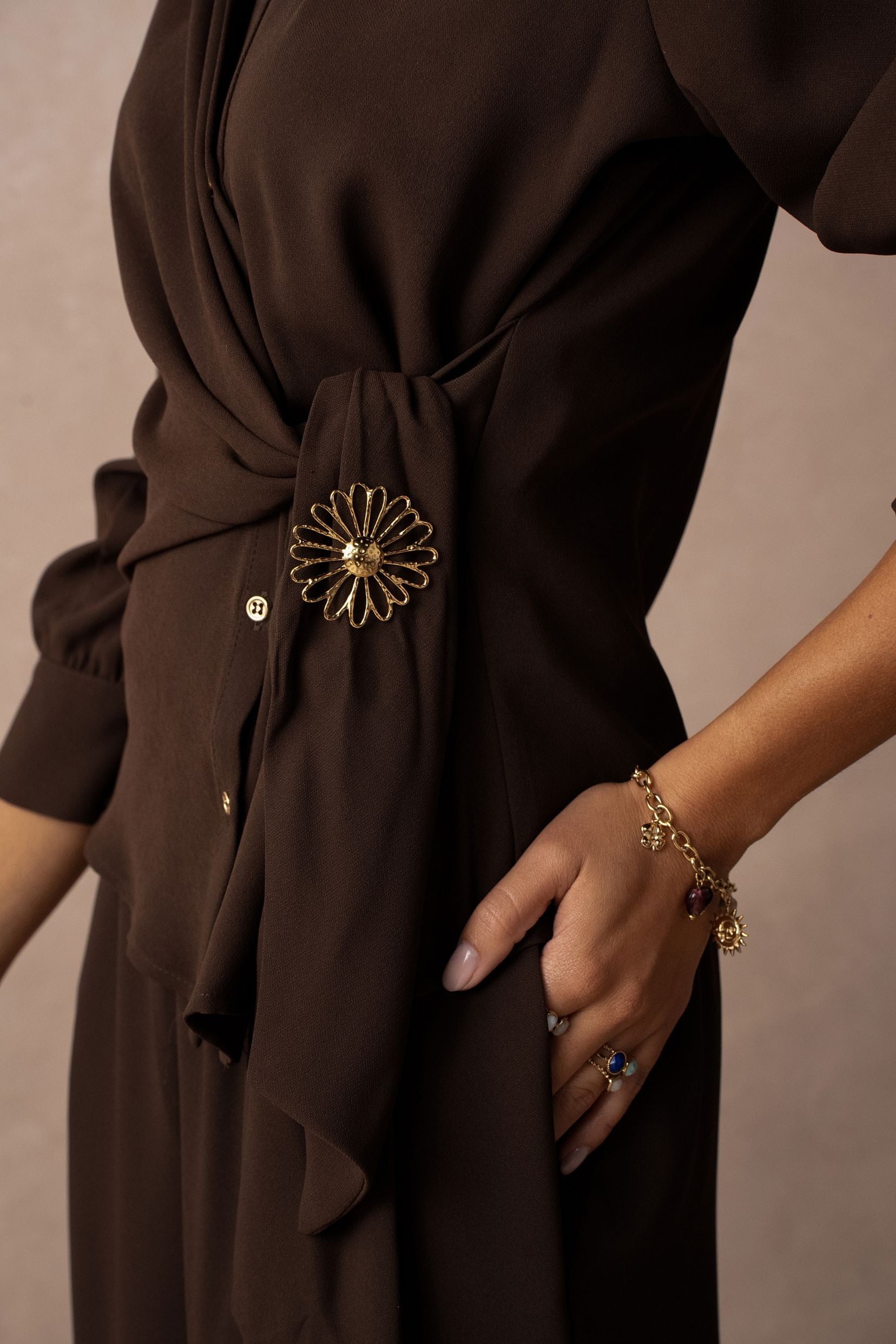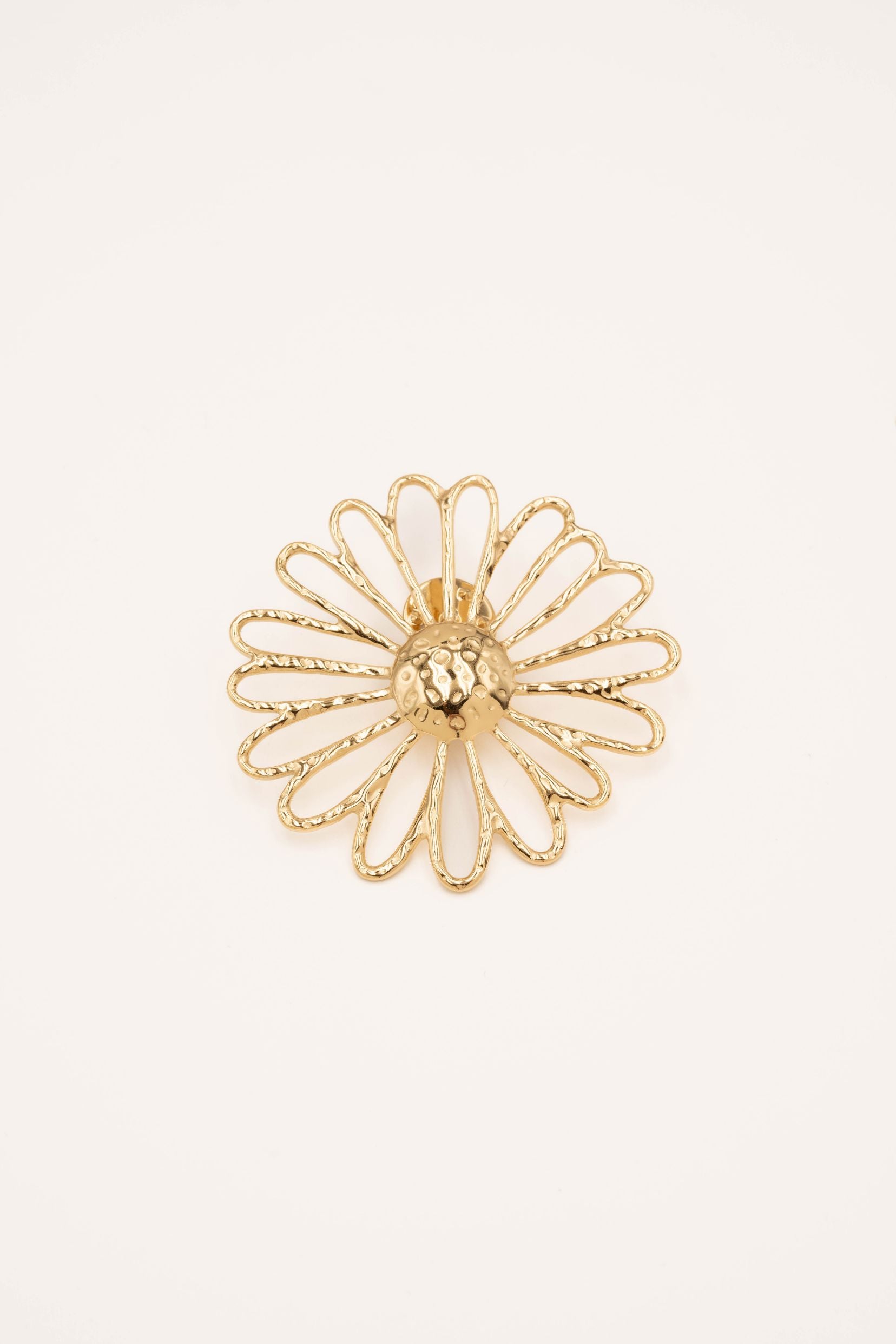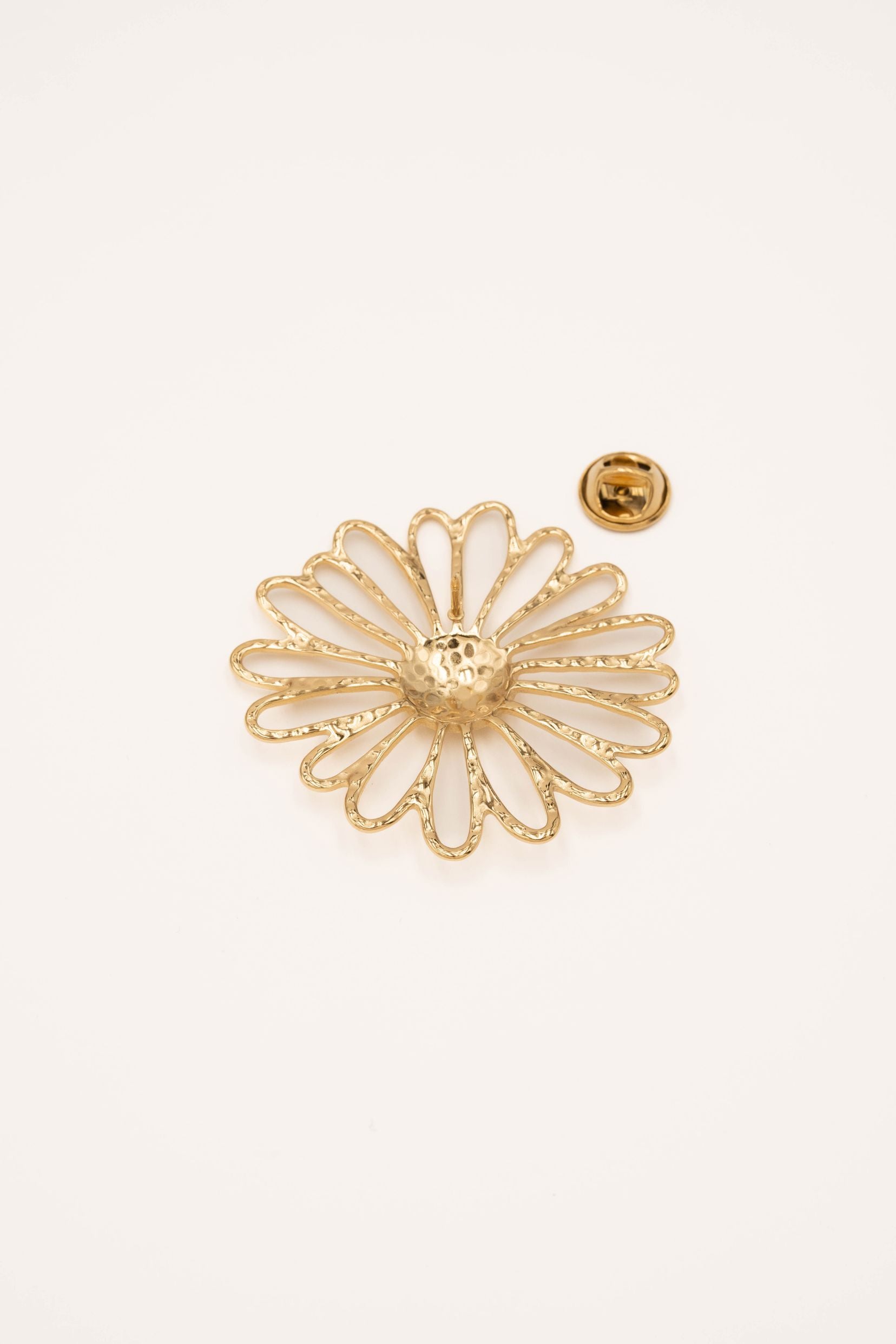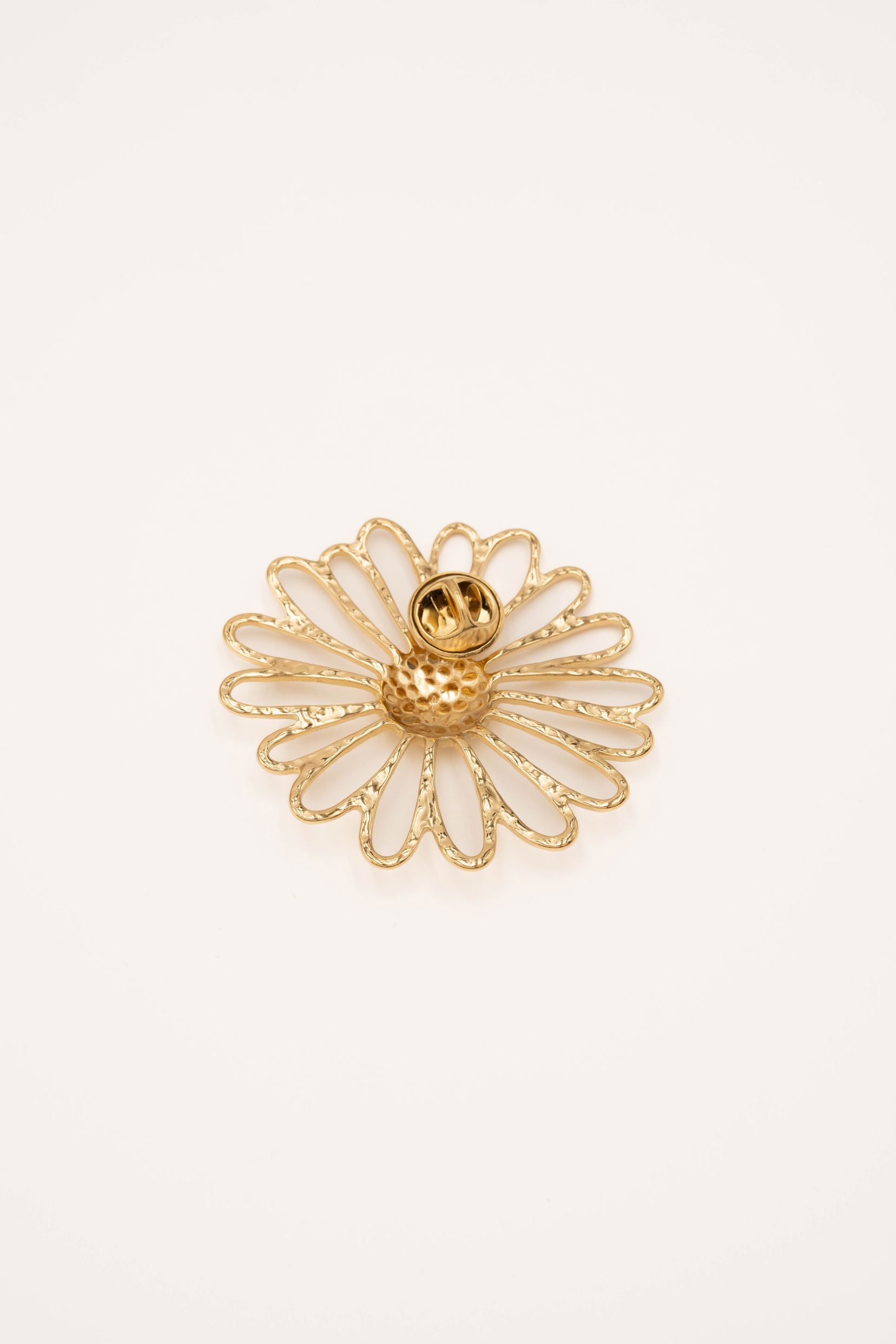 Broche type pin's en acier inoxydable composé d'un motif marguerite ajouré.