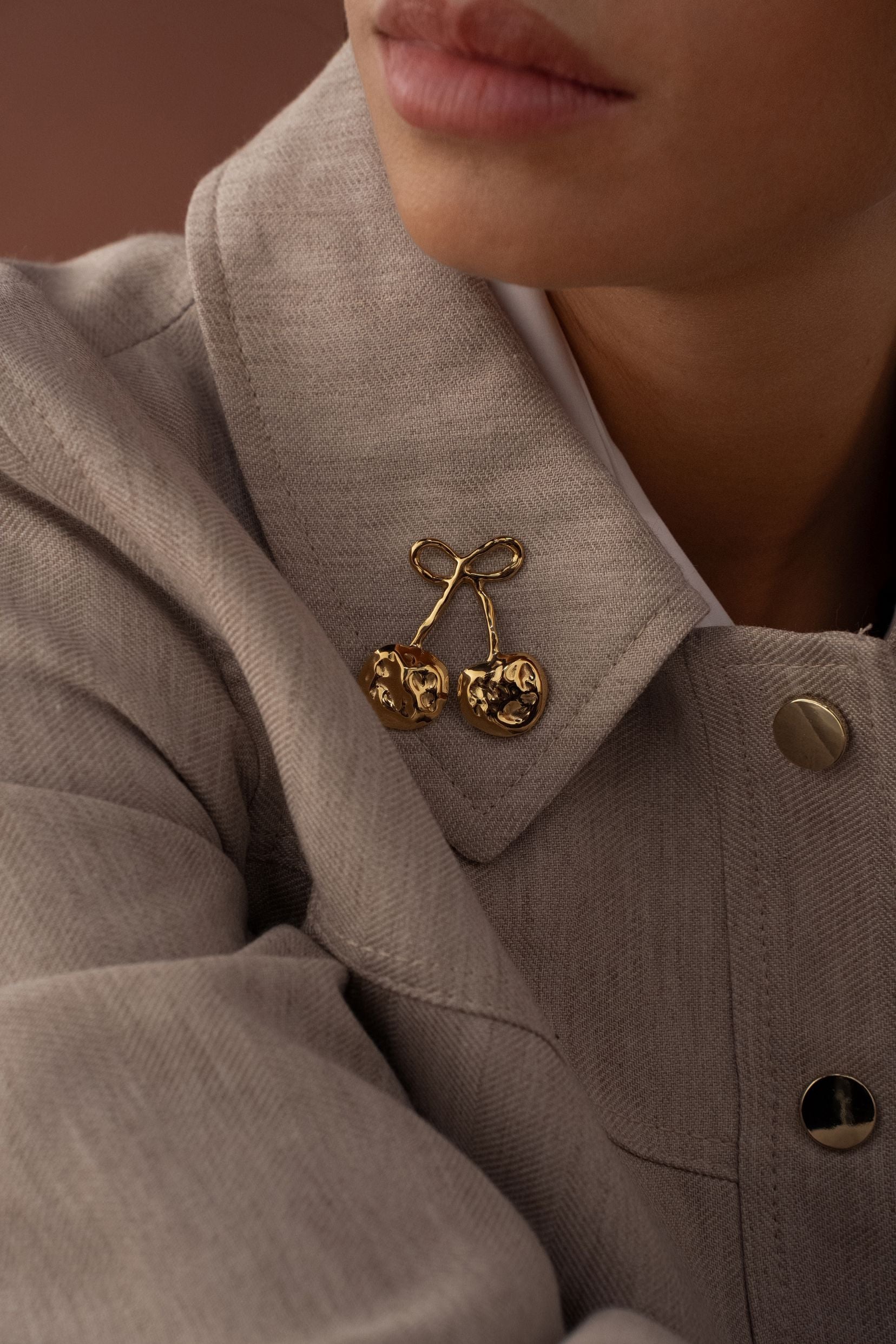Broche type pin's en acier inoxydable composé d'un motif cerise.