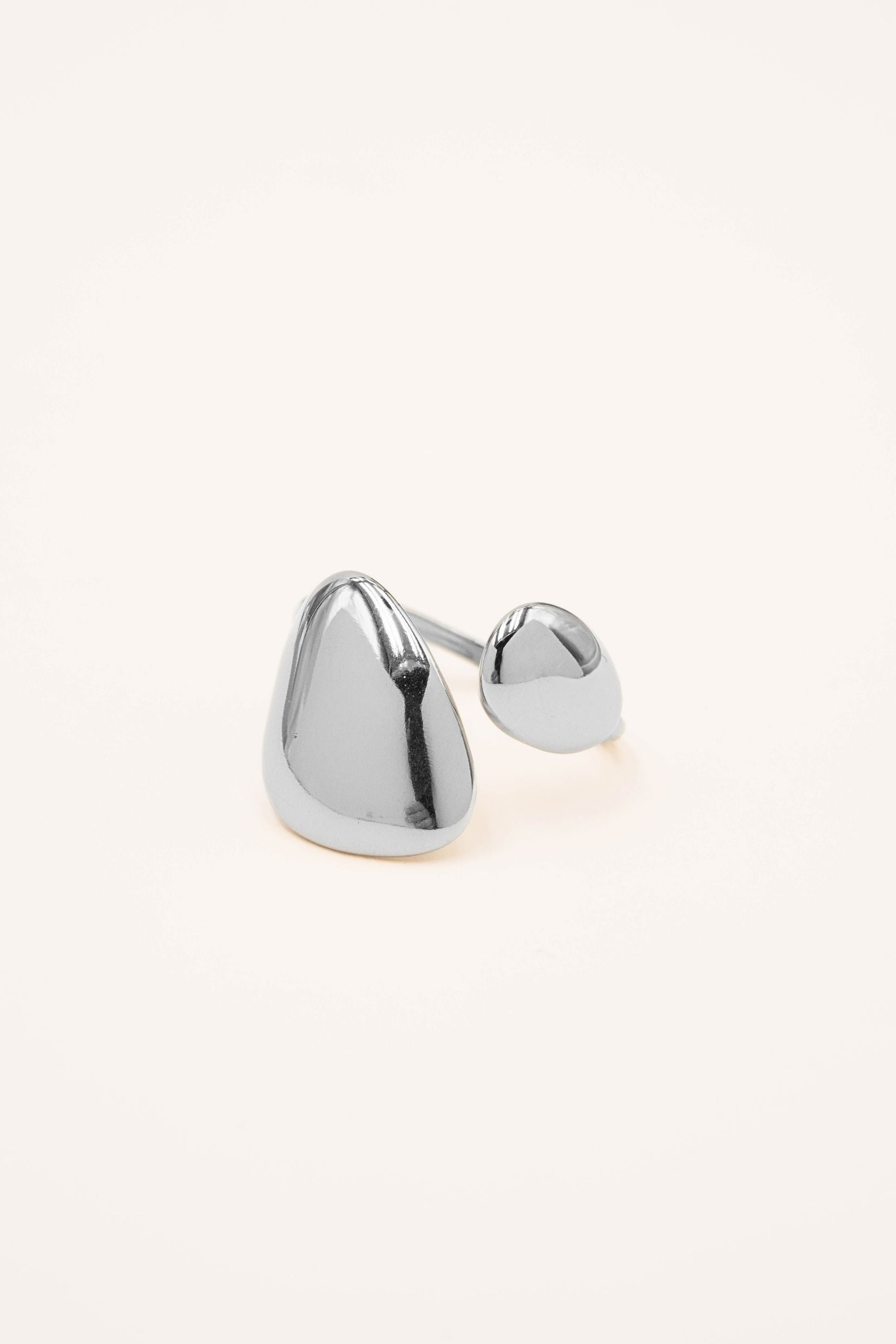 Bague ouverte en acier inoxydable composée de formes arrondies.