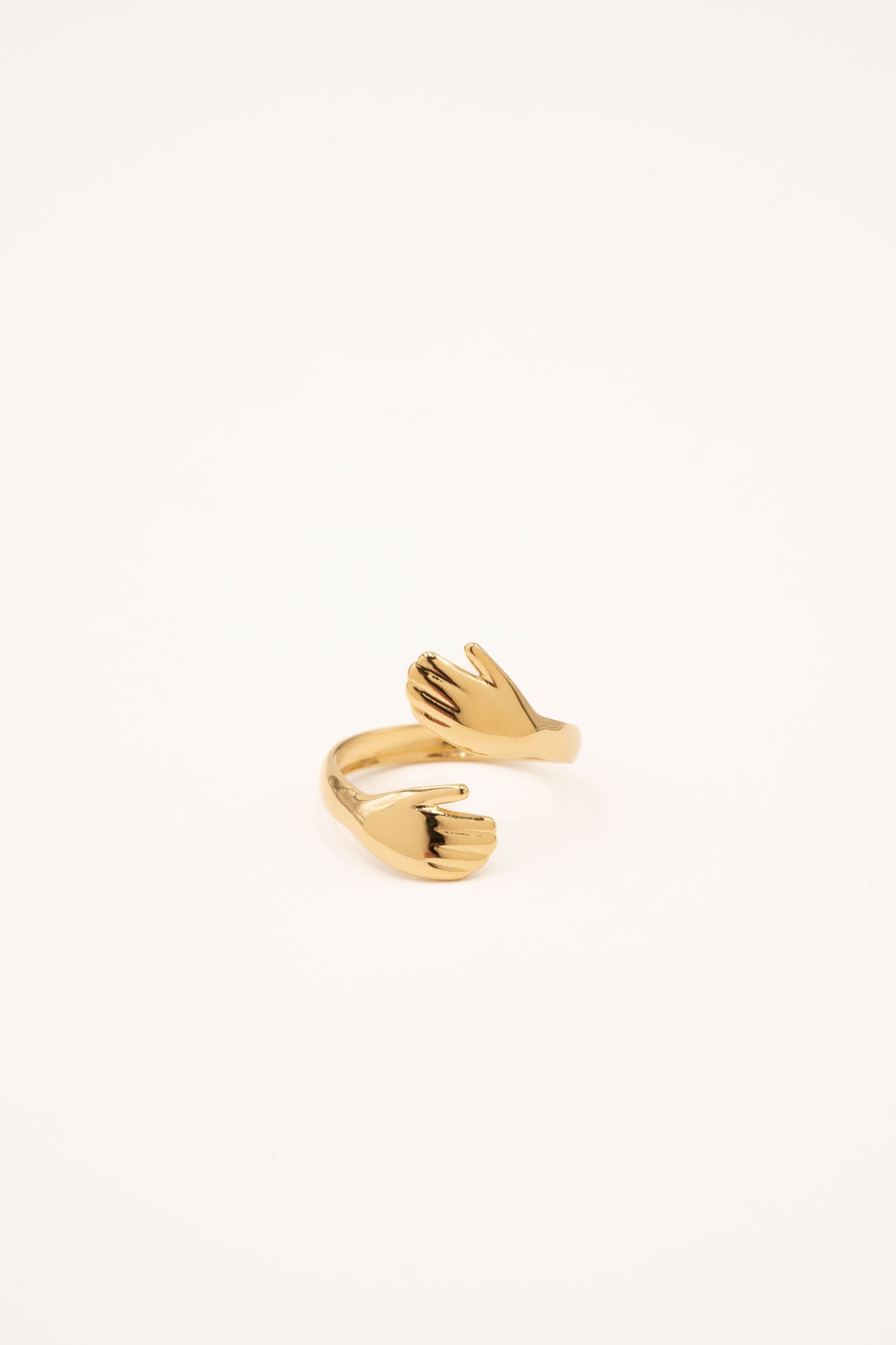 Bague ouverte en acier inoxydable martelée composée de 2 mains.
