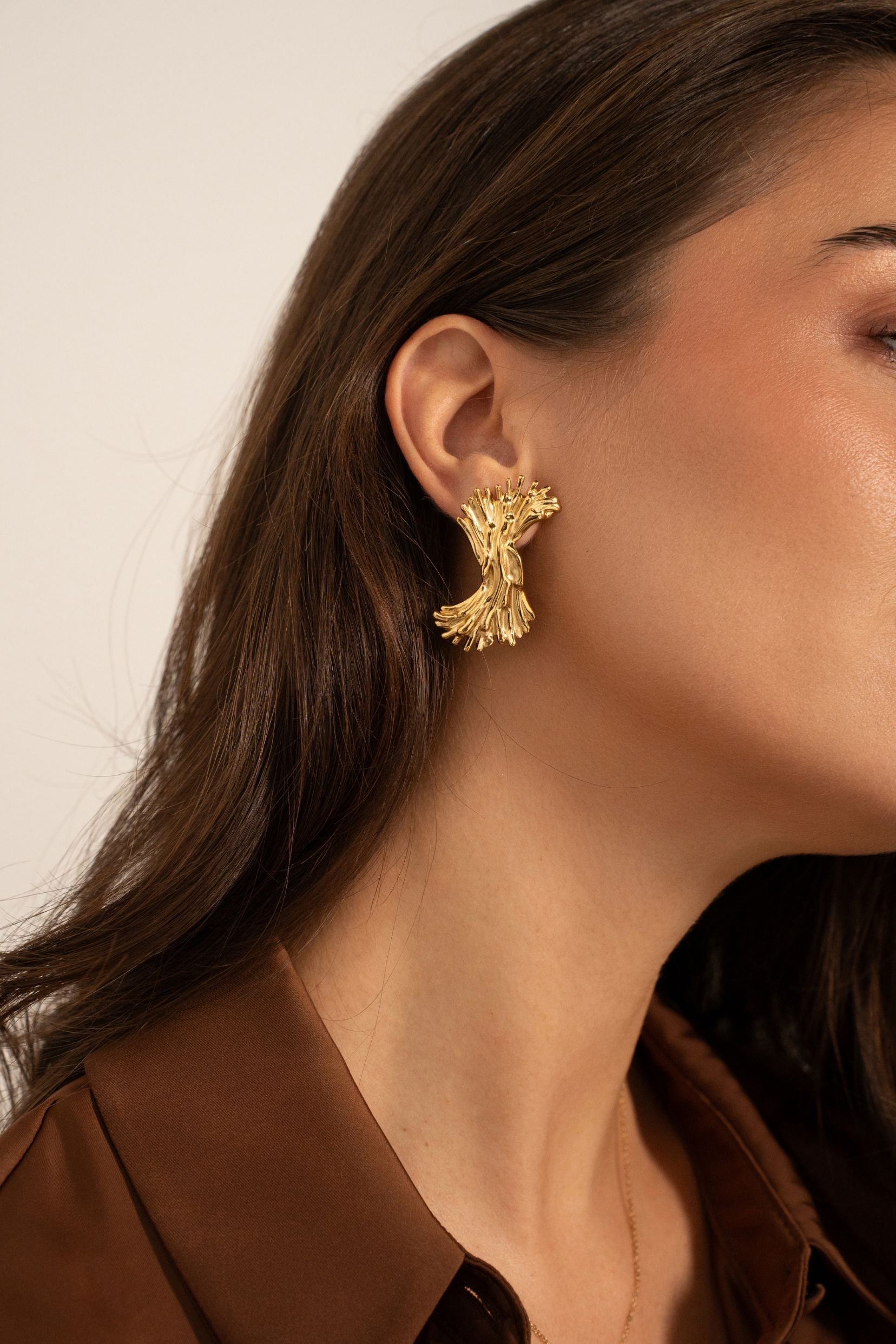 Boucles d'oreilles puces en acier inoxydable composées d'un motif végétal.