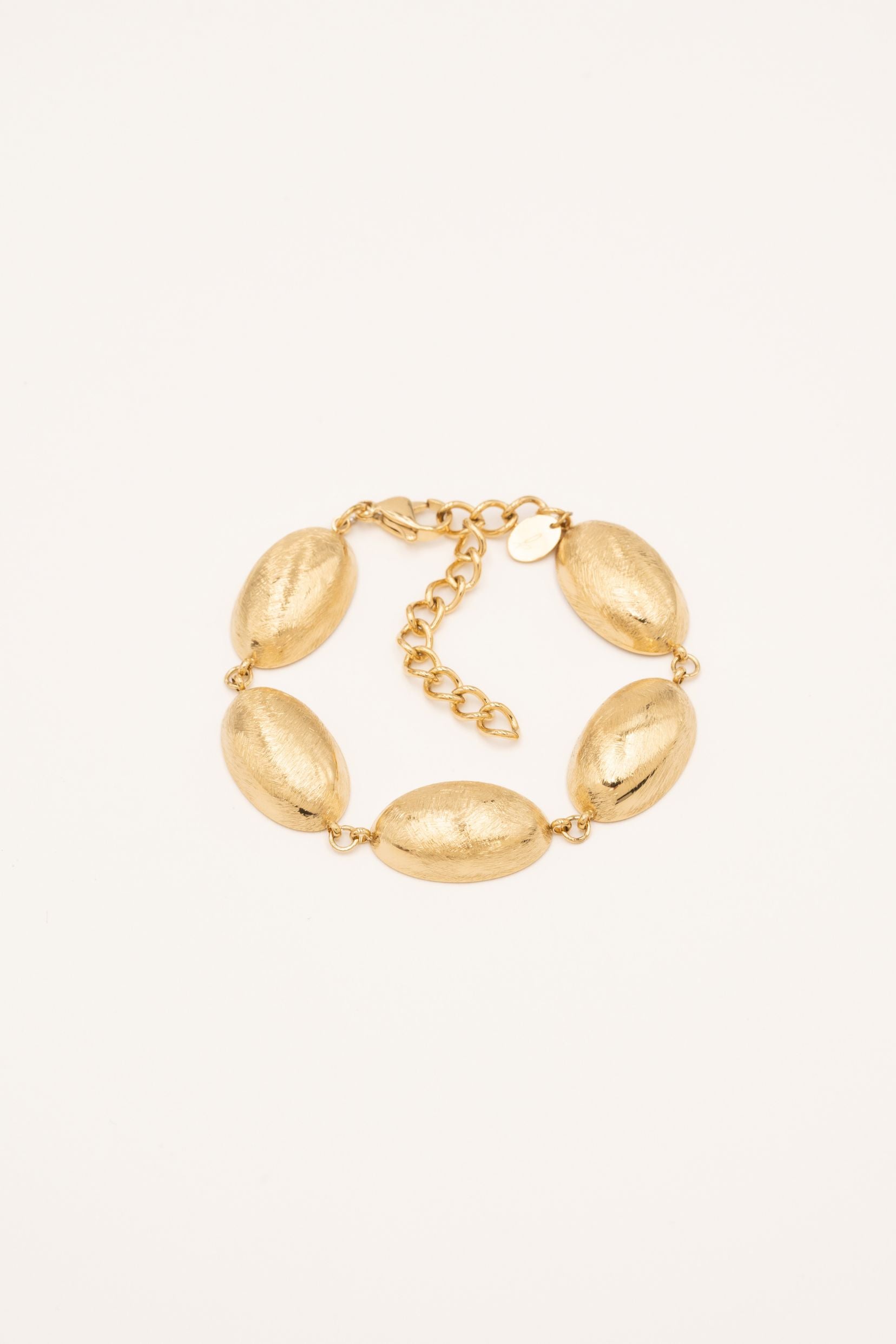 Bracelet en acier inoxydable composé de gros maillons ovales effet brossés et incurvés.