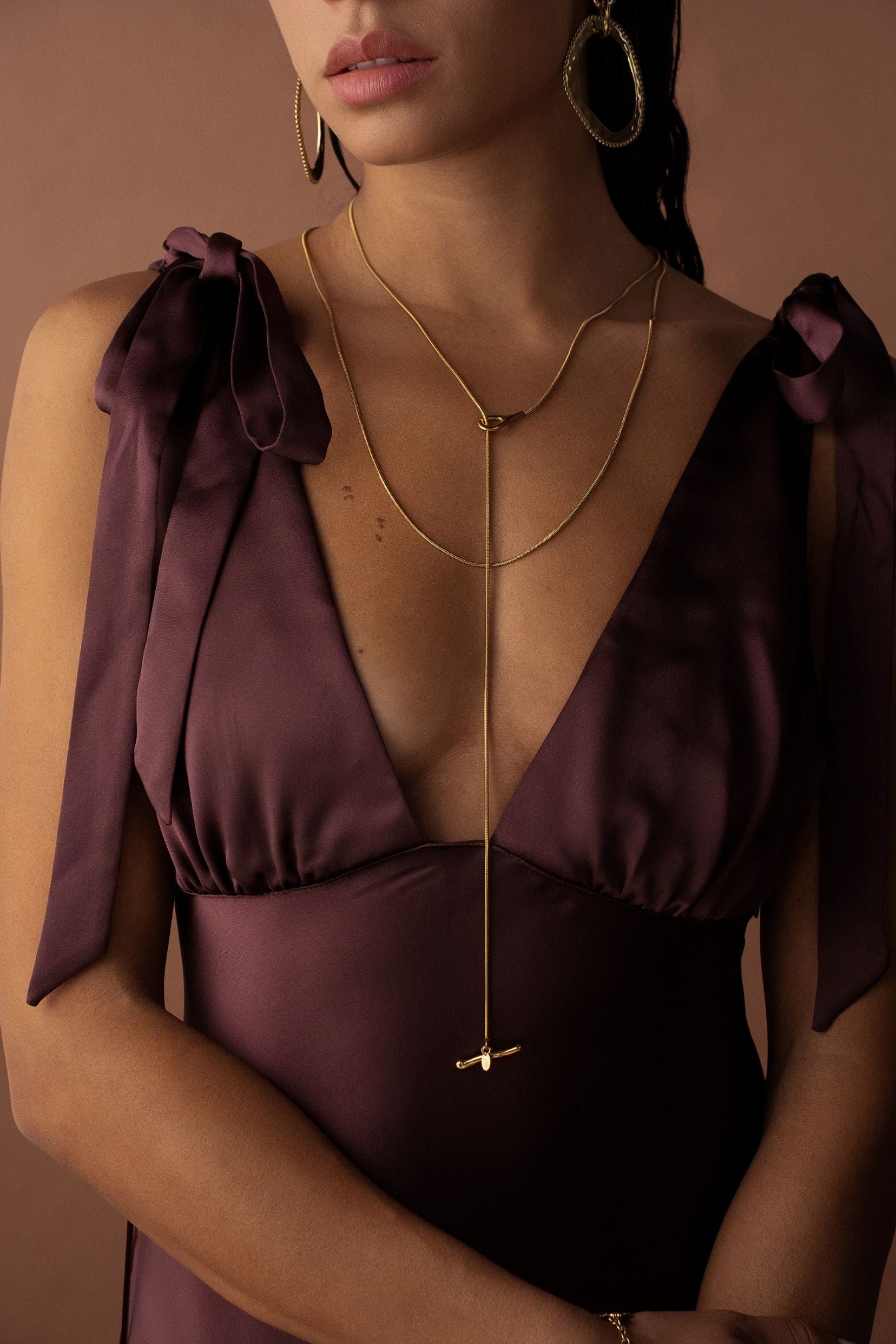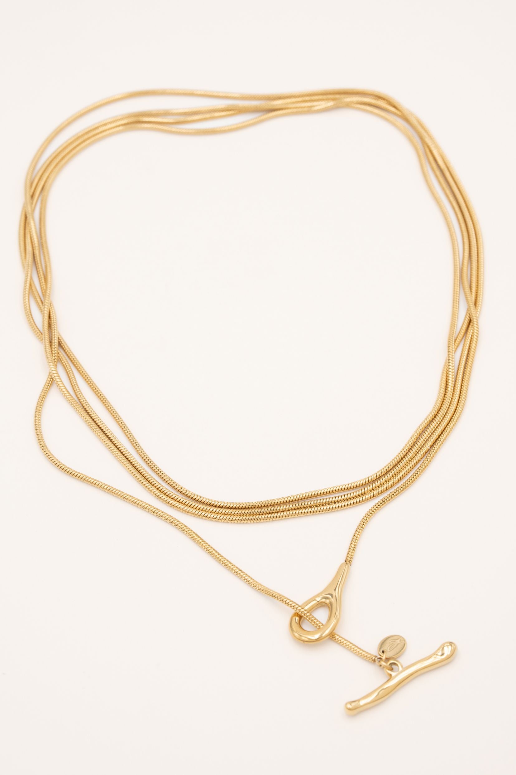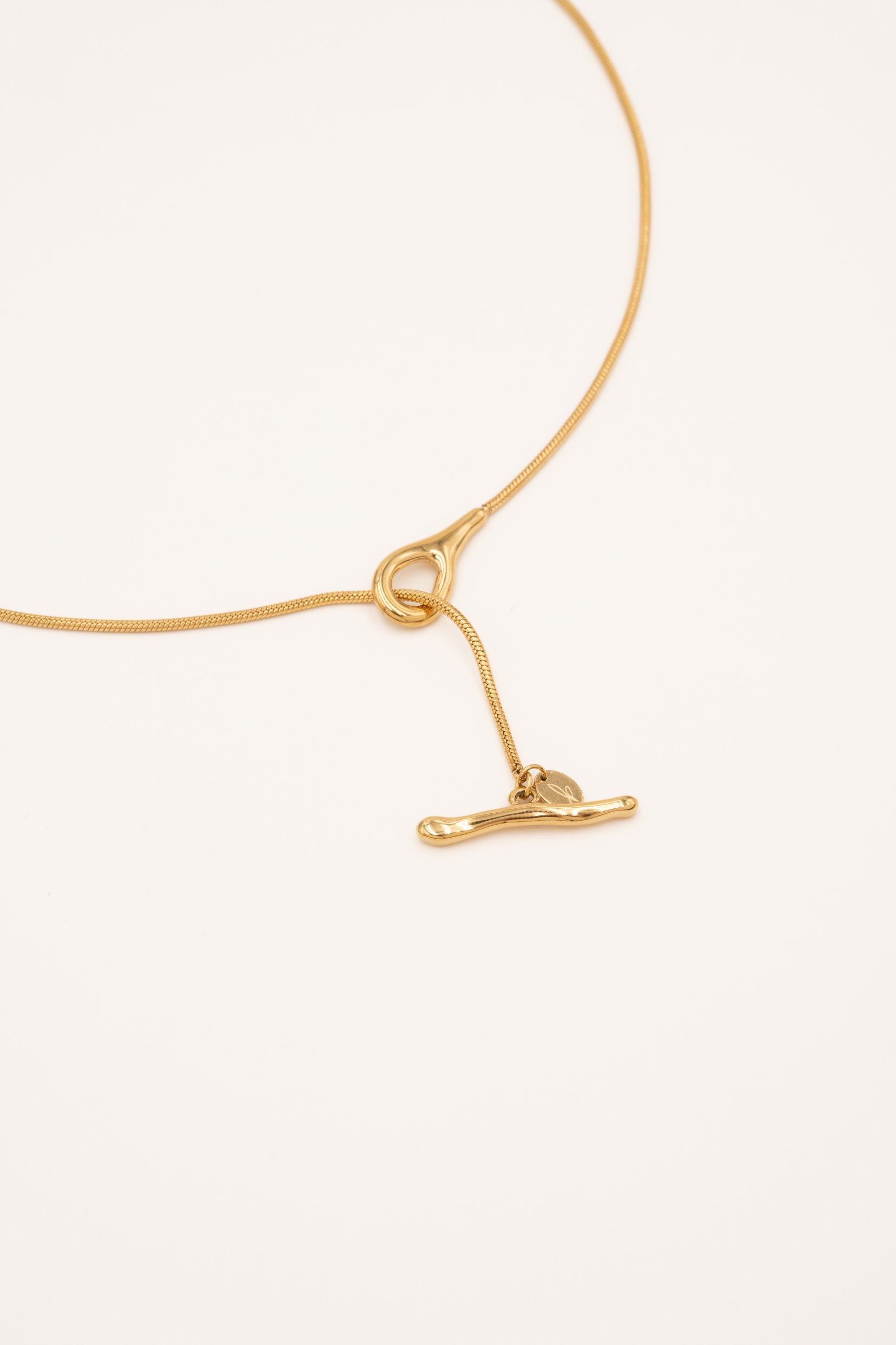 Collier en Y, type cravate en acier inoxydable composé d'une maille anglaise et d'un fermoir en T.