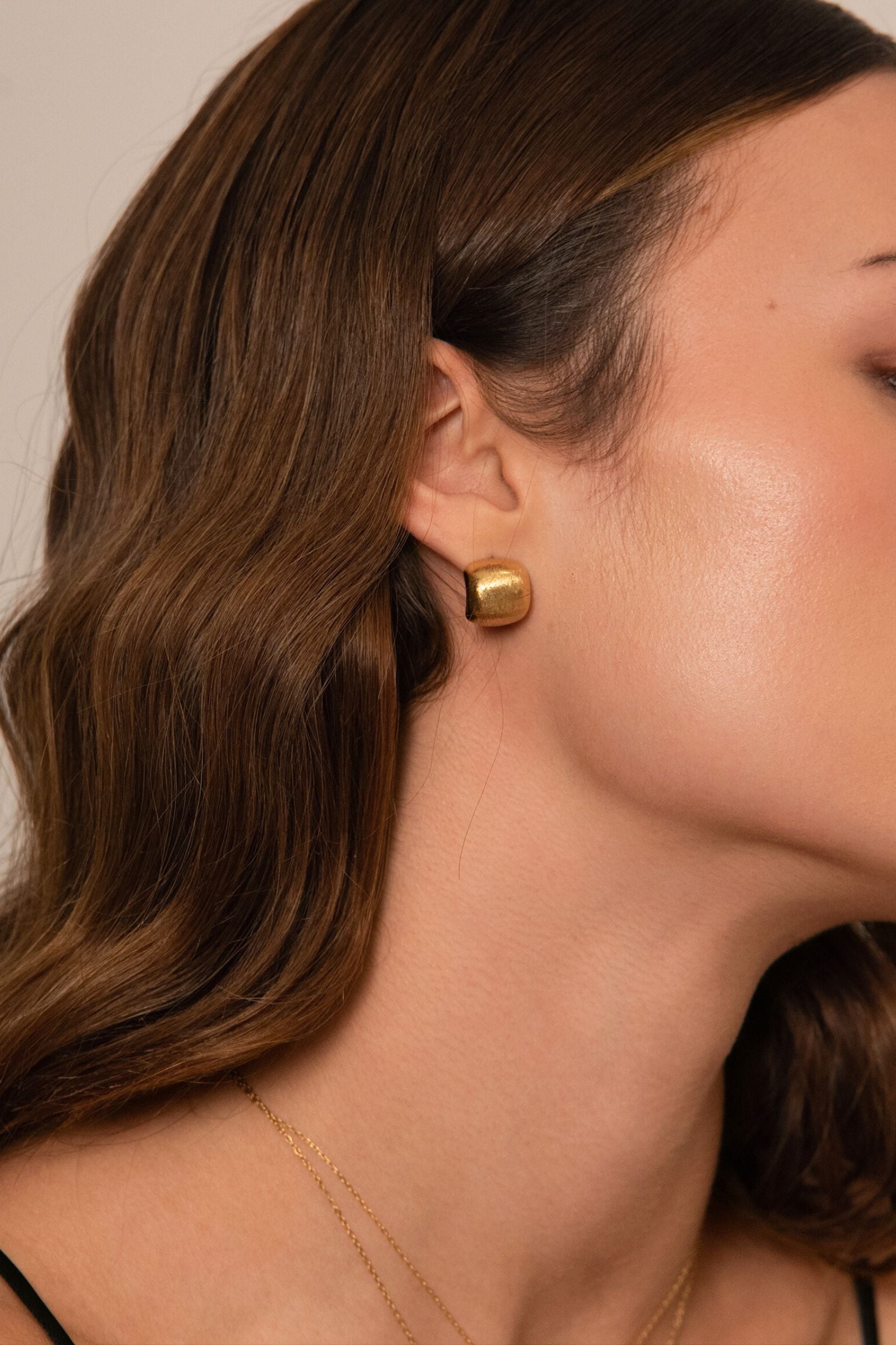 Boucles d'oreilles à puce en acier inoxydable composées d'un carré bombé effet brossé.