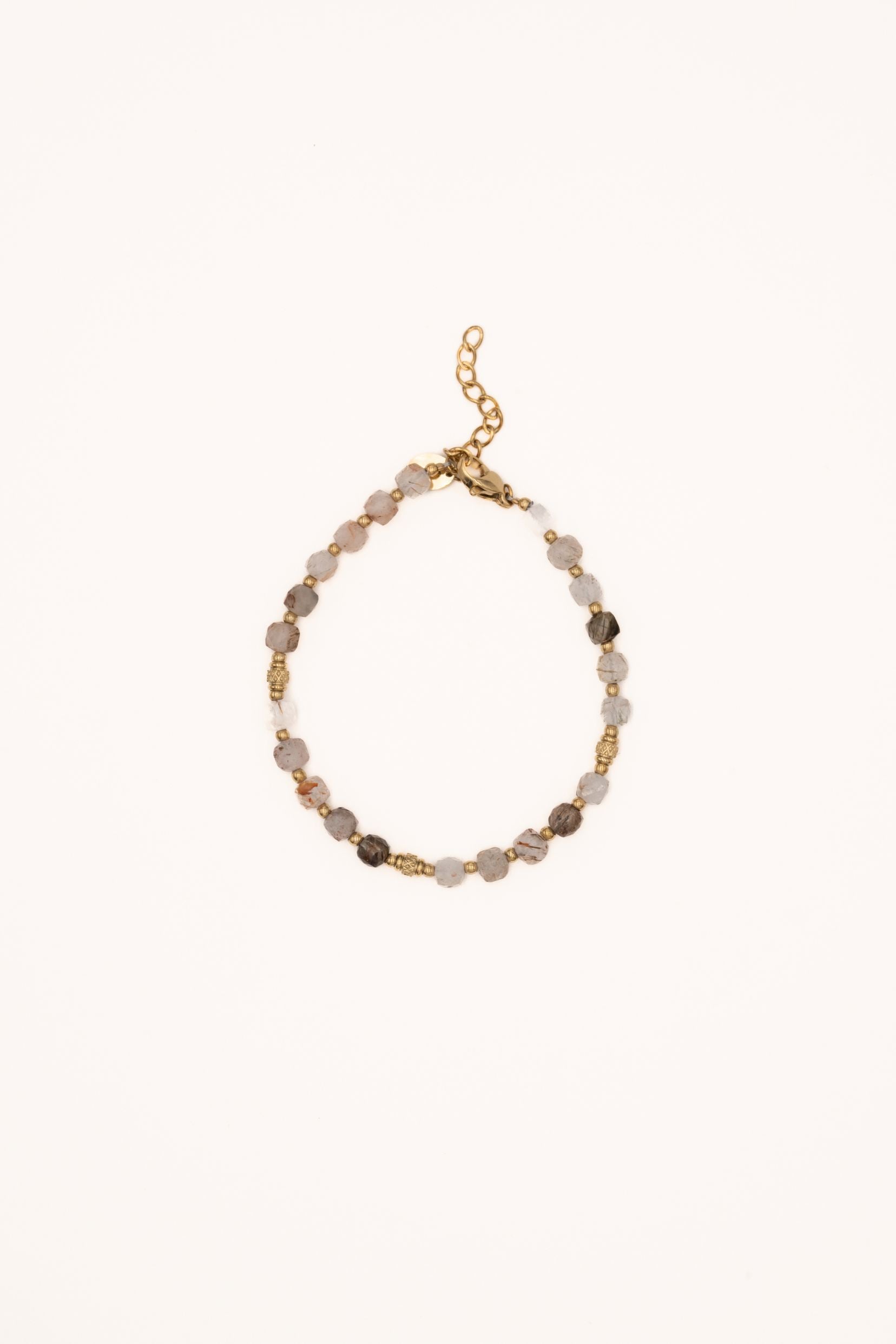 Bracelet sur câble composé de petites perles en acier inoxydable et de pierres naturelles cubiques.